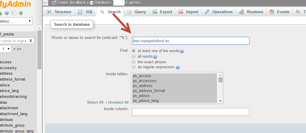Pronux Posted June 3, 2014 Share Posted June 3, 2014 Hier mal ein kurzer Tipp: Wenn bei solchen Shop-Migrationen etwas noch auf den alten Shop zeigt, dann gehe in einem ersten Schritt immer wie folgt vor um einen Hinweis auf die falsche Konfiguraiton zu erhalten: 1. Cache im Browser und Shop komplett löschen und .htaccess Datei neu erstellen lassen (dieser Schritt nach jeder Änderung durchführen) 2. DB scannen, in deinem Fall nach neu.topsportsfood.eu, vgl. Screenshot unten 3. Alle Dateien scannen, in deinem Fall nach neu.topsportsfood.eu Hope it helps. Link to comment Share on other sites More sharing options...