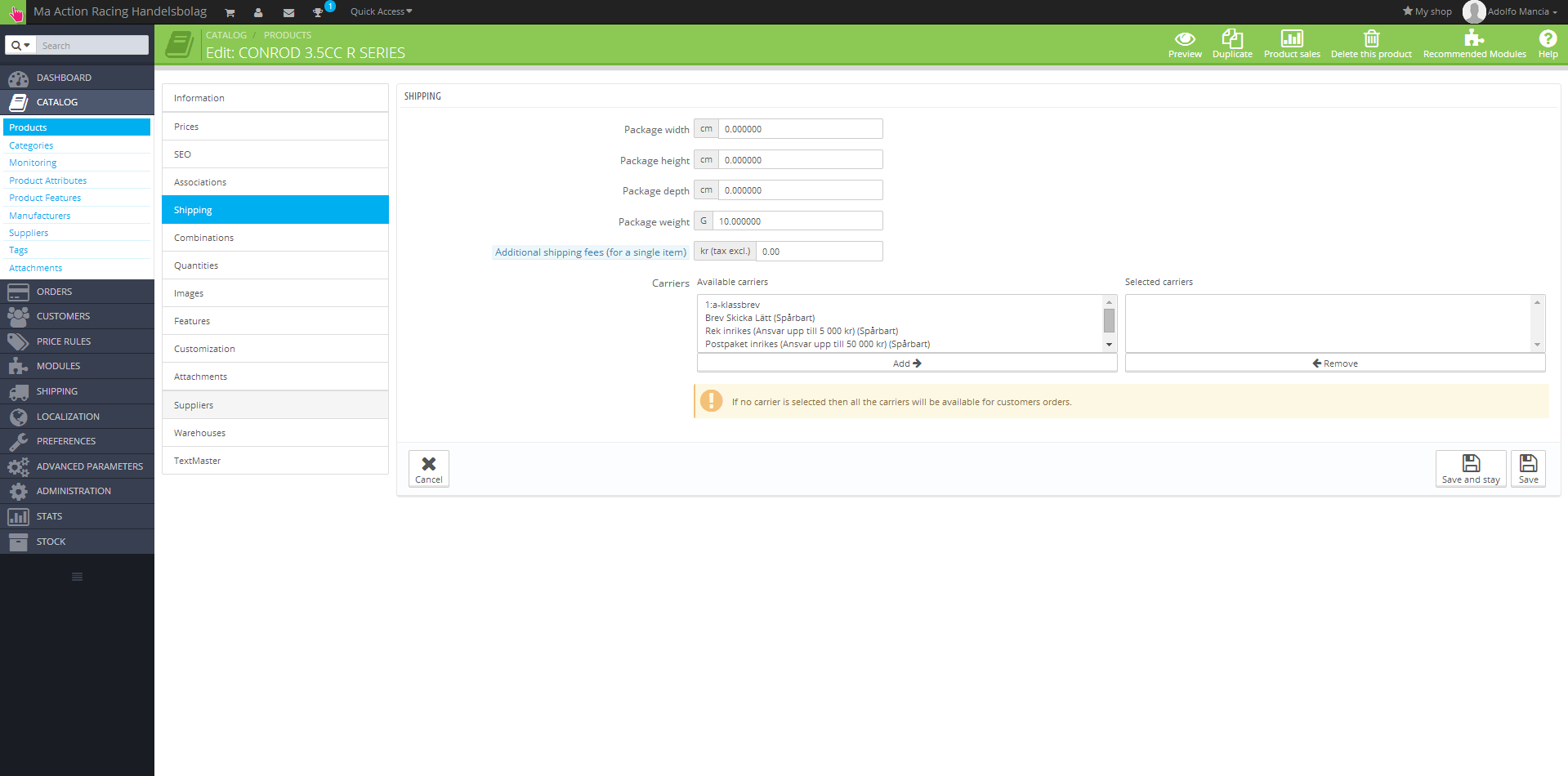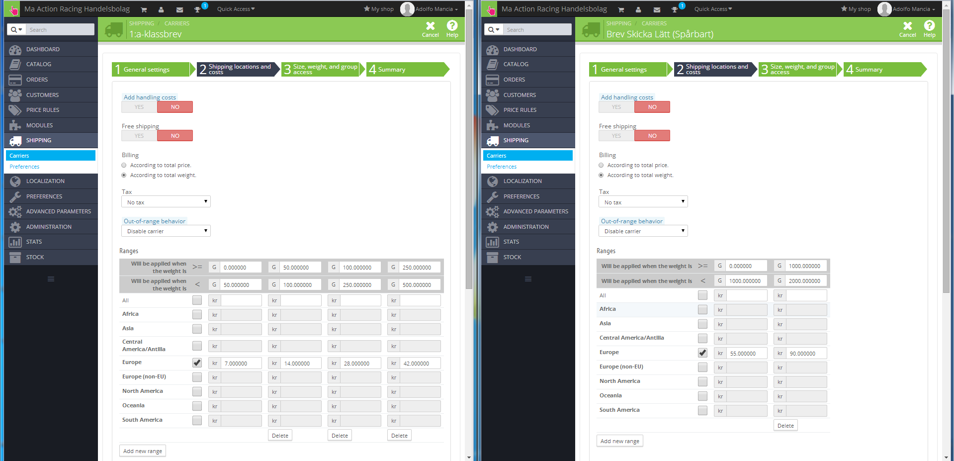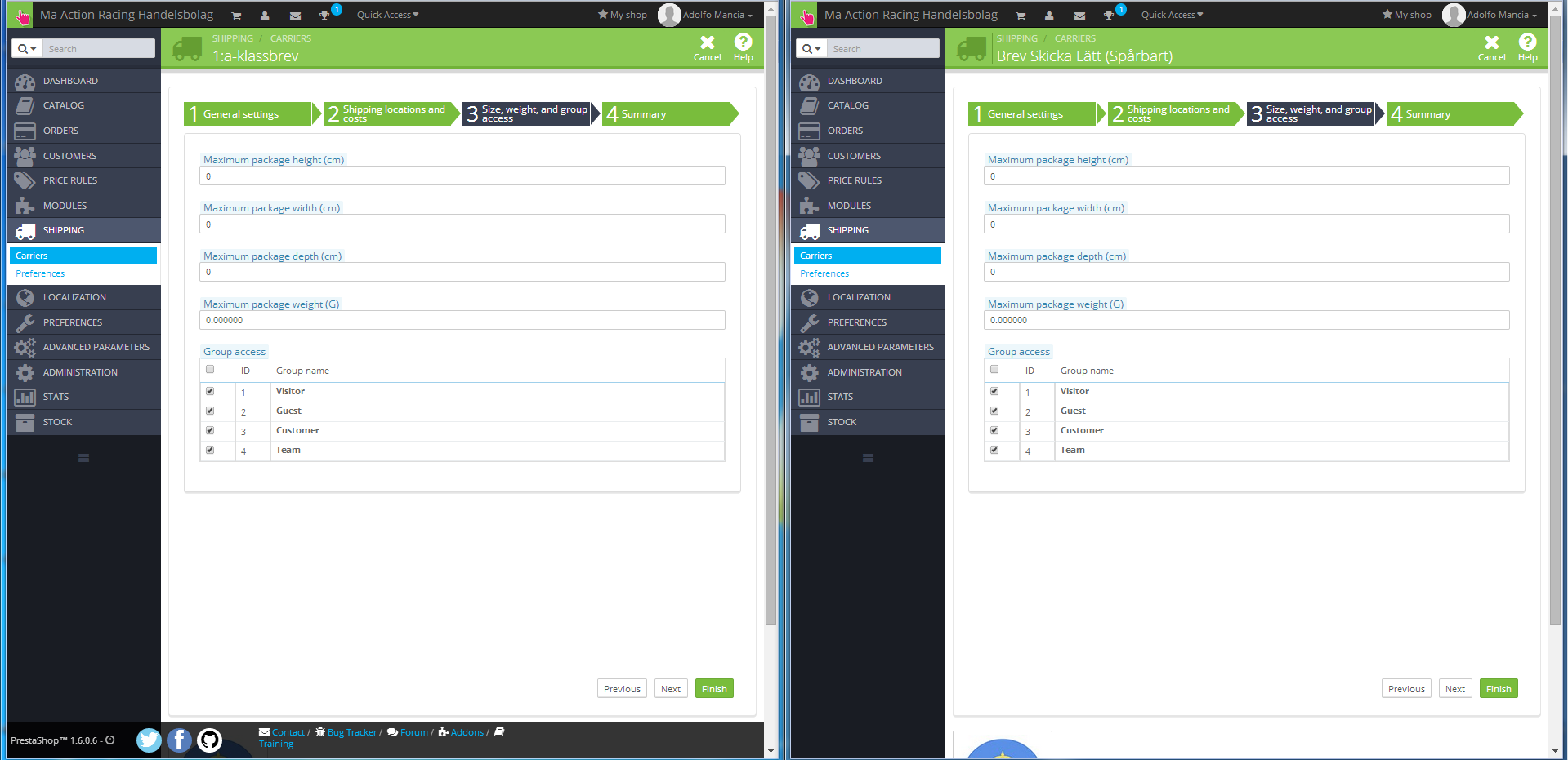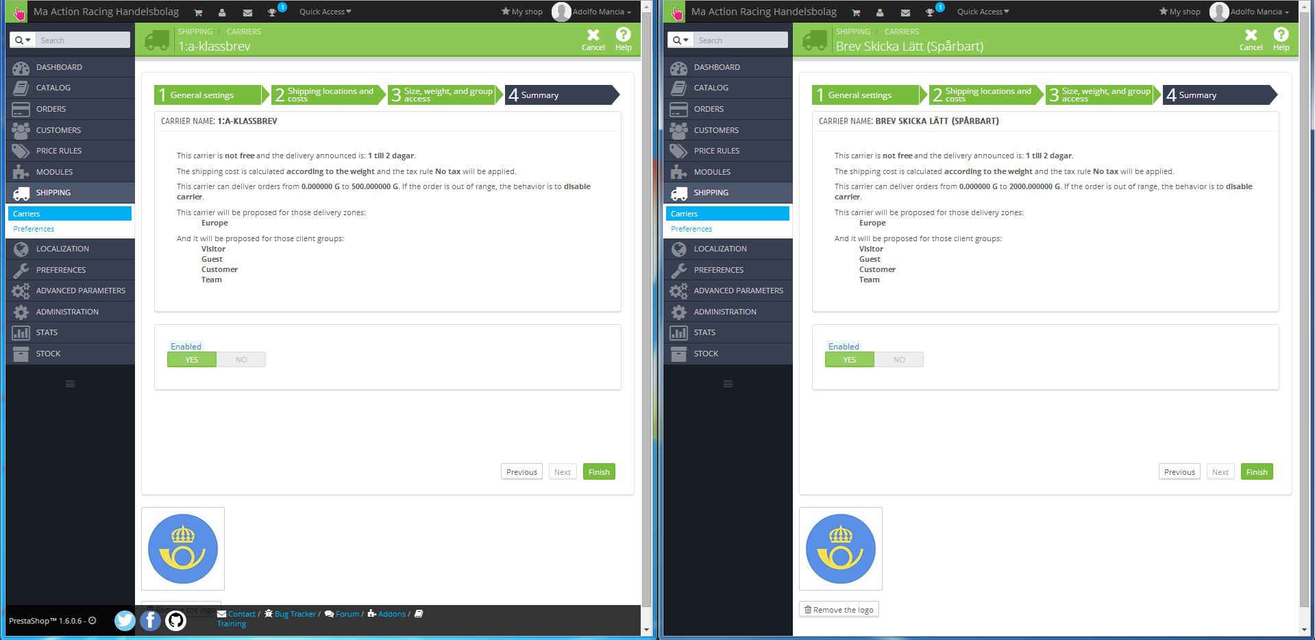 admin4fun Posted June 7, 2014 Share Posted June 7, 2014 Hi, when i make a new carrier it dossent show up on the checkout page. The carrier "Brev Skicka Lätt (Spårbart)" works fine. The new carrier 1:a-klassbrev is not shown on the checkout The pruduct i try to buy and the pruduct in the checkout. My website is https://shop.redsracing.se Hope somebody can help me Best Reggards Sebastian Mancia Link to comment Share on other sites More sharing options...