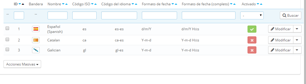 vamos a probar otra cosa ves a localizacion/idiomas y dejalo como en la imagen luego vuelve a desactivar y activar las url amigables
