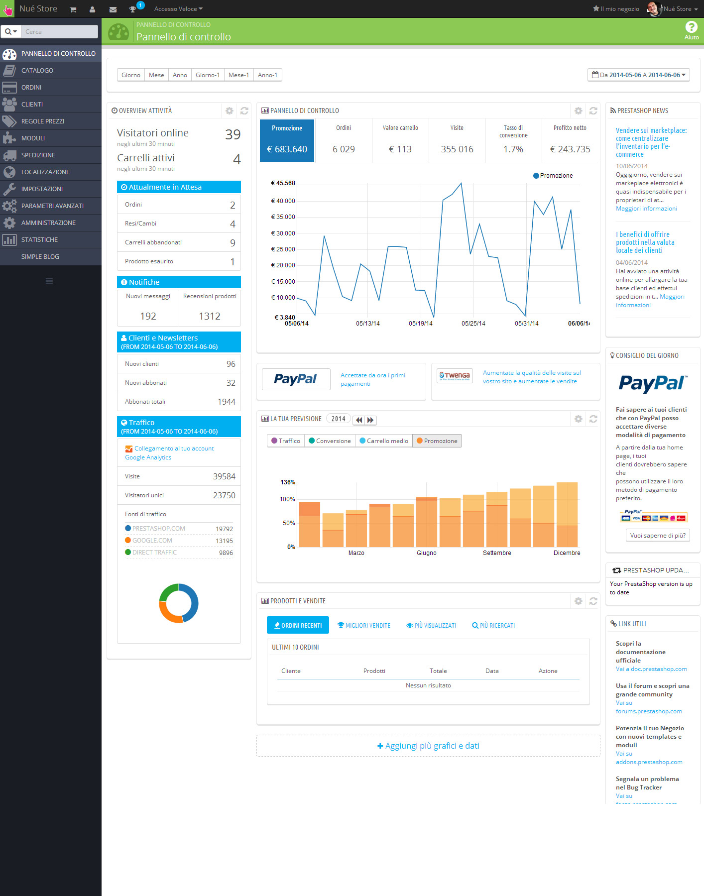 TribalDexterD Posted June 14, 2014 Share Posted June 14, 2014 Hola!!! Quello che vedi, se non erro sono dati generati a caso. Dalla home del pannello, nell'angolo inferiore destro hai un pulsante "Modalità Demo" basta mettere NO e i dati scompariranno. Poi c'è un modulo chiamato Ottimizzatore Prestashop, che ti può servire a svuotare il DB dopo aver fatto tutte le tue prove. 1 Link to comment Share on other sites More sharing options...