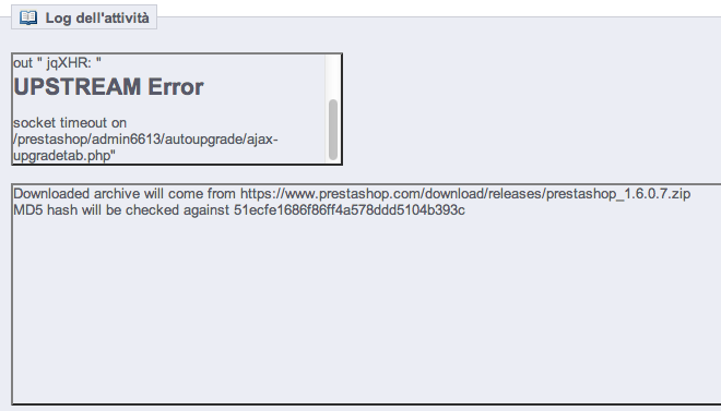 volevo chiedervi perchè nel momento in cui vado ad aggiornare il prestashop mi da questo errore....