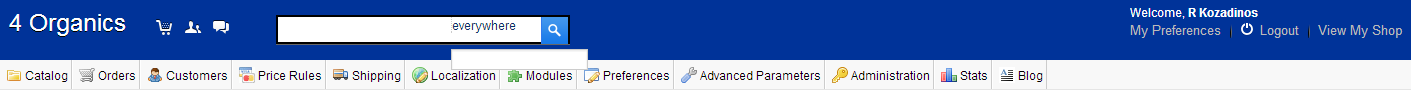 4organics Posted June 18, 2014 Share Posted June 18, 2014 Hi, I am hoping to get some help. After a failed upgrade to 1.6, I reverted to 1.5.6.2 and everything is fine except for the backoffice header, which is acting strange. It is not displaying achievements icon anymore and the search box and quick links are broken. It seems to appear correctly for a second and then a text box covers the drop down and the whole thing de-aligns and is screwed up (I have attached a grab). I have done everything to clear cache, browser cache, reuploaded files, and so on. Can anyone please tell me how the admin header is created and what is going on behind the scenes? It is not the admin css (in the admin dir and also in the css dir), and it isn't related to my theme, so how do i find what is breaking the header? It's not the javascript because I reuploaded that. Where else can I look for the problem. There are no errors in the console, the source looks perfect, all the scripts load fine in the head section. I am lost as to what else to look at. I thought maybe the upgrade screwed things up, but the shop is completely back to its original 1.5.6.2 files, so where else can it be going wrong? Thanks in advance for any guidance Link to comment Share on other sites More sharing options...