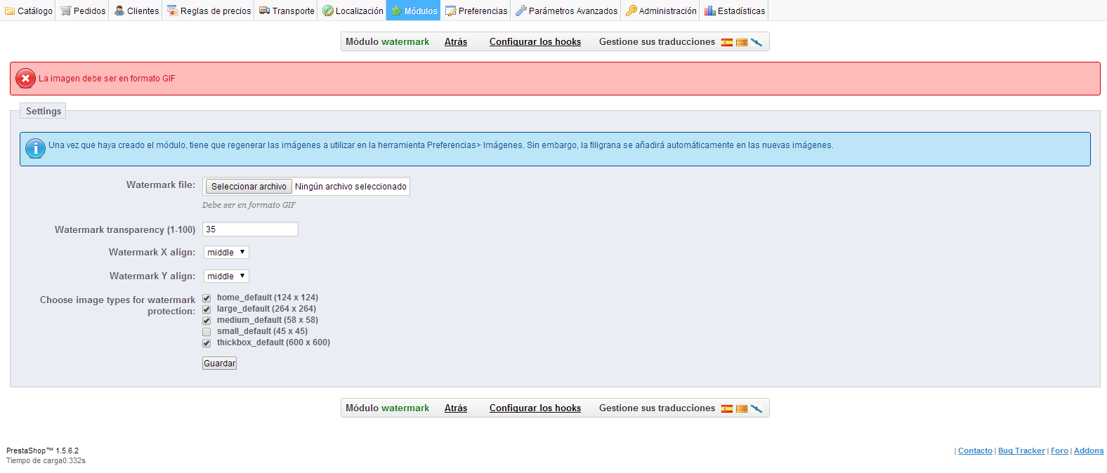 mckk Posted June 18, 2014 Share Posted June 18, 2014 Buenas tardes, necesito ayuda de la comunidad ya que se me han agotado las ideas y estoy desesperado. Mi problema es el siguiente, monte el prestashop version 1.5.6.2, he estado trabajando en un subdomino y en local para maquetar y ningún problema. El problema vino al migrar el proyecto a mi propio hosting que actualmente lo tengo contratado con STRATO. El primer problema que tuve fue que no podía añadir imágenes al homeslider pero gracias a un aporte vuestro encontré una solución que era comentar unas lineas en un archivo php y funciono. Mi sorpresa vino cuando me encontré el mismo problema al intentar subir el logo para la marca de agua que en el subdomino funciono sin problemas. El modulo es el de filigrana y me da el mismo error que daba el homeslider solo que este me da el error que tengo que subir una imagen .gif, pero la imagen es en ese formato!! Espero que alguien me pueda echar un cable en este asunto y poder solucionarlo ya que estoy atascado y no encontré nada relacionado para este tema. Gracias Link to comment Share on other sites More sharing options...