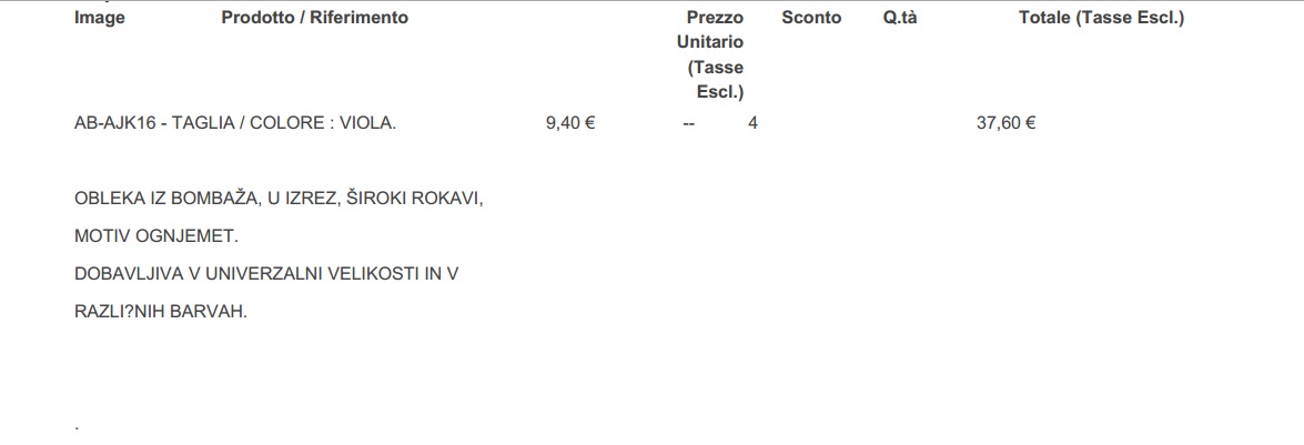 giuliopowa Posted June 25, 2014 Share Posted June 25, 2014 hello, in the invoice I would like to see the picture of the product and a short description of the product. I managed to make this change. but does not display them together, if the active modification of the description shows me the description of the product, but if I active also changes to display the images, the descriptions is delete and you only see the images. I'll explain: to put a short description of the article:- in the file pdf/invoice.tpl basta inserire questo {$order_detail.description_short}- in the file classes/order/OrderInvoice.php: change this: public function getProductsDetail() { return Db::getInstance(_PS_USE_SQL_SLAVE_)->executeS(' SELECT * FROM `'._DB_PREFIX_.'order_detail` od LEFT JOIN `'._DB_PREFIX_.'product` p ON p.id_product = od.product_id LEFT JOIN `'._DB_PREFIX_.'product_shop` ps ON (ps.id_product = p.id_product AND ps.id_shop = od.id_shop) WHERE od.`id_order` = '.(int)$this->id_order.' AND od.`id_order_invoice` = '.(int)$this->id); } on this: public function getProductsDetail() { return Db::getInstance(_PS_USE_SQL_SLAVE_)->executeS(' SELECT * FROM `'._DB_PREFIX_.'order_detail` od LEFT JOIN `'._DB_PREFIX_.'product` p ON p.id_product = od.product_id LEFT JOIN `'._DB_PREFIX_.'product_lang` pl ON pl.id_product = od.product_id LEFT JOIN `'._DB_PREFIX_.'product_shop` ps ON (ps.id_product = p.id_product AND ps.id_shop = od.id_shop) WHERE od.`id_order` = '.(int)$this->id_order.' AND od.`id_order_invoice` = '.(int)$this->id); } - tu put the imagesin the file : \pdf\invoice.tpl <!-- PRODUCTS TAB --><table style="width: 100%"><tr><td style="width: 85%; text-align: right"><table style="width: 100%; font-size: 8pt;"><tr style="line-height:4px;"><td style="text-align: left; background-color: #4D4D4D; color: #FFF; padding-left: 10px; font-weight: bold; width: 15%">{l s='Image' pdf='true'}</td>...<!-- PRODUCTS -->{foreach $order_details as $order_detail}{cycle values='#FFF,#DDD' assign=bgcolor}<tr style="line-height:6px;background-color:{$bgcolor};"><td style="text-align: left; width: 15%"><img src="{$order_detail.pro_img}"/></td>in questo file : \classes\pdf\HTMLTemplateInvoice.php/*** Returns the template's HTML content* @return string HTML content*/public function getContent(){ $country = new Country((int)$this->order->id_address_invoice);$invoice_address = new Address((int)$this->order->id_address_invoice);$formatted_invoice_address = AddressFormat::generateAddress($invoice_address, array(), '<br />', ' ');$formatted_delivery_address = '';if ($this->order->id_address_delivery != $this->order->id_address_invoice){$delivery_address = new Address((int)$this->order->id_address_delivery);$formatted_delivery_address = AddressFormat::generateAddress($delivery_address, array(), '<br />', ' ');}$customer = new Customer((int)$this->order->id_customer);$this->smarty->assign(array('order' => $this->order,'order_details' => $this->order_invoice->getProducts(),'cart_rules' => $this->order->getCartRules($this->order_invoice->id),'delivery_address' => $formatted_delivery_address,'invoice_address' => $formatted_invoice_address,'tax_excluded_display' => Group::getPriceDisplayMethod($customer->id_default_group),'tax_tab' => $this->getTaxTabContent(),'customer' => $customer));$prod_dtl_id = $this->order->getProducts();foreach($prod_dtl_id as &$product){if ($product['image'] != null){$name = 'product_mini_'.(int)$product['product_id'].(isset($product['product_attribute_id']) ? '_'.(int)$product['product_attribute_id'] : '').'.jpg';// generate image cache, only for back office$product['image_tag'] = ImageManager::thumbnail(_PS_IMG_DIR_.'p/'.$product['image']->getExistingImgPath().'.jpg', $name, 45, 'jpg');if (file_exists(_PS_TMP_IMG_DIR_.$name))$product['image_size'] = getimagesize(_PS_TMP_IMG_DIR_.$name);else$product['image_size'] = false;}$product['pro_img'] = _PS_TMP_IMG_DIR_.$name;}$this->smarty->assign('order_details', $prod_dtl_id);return $this->smarty->fetch($this->getTemplateByCountry($country->iso_code));}/*** Returns the tax tab content*/ if you do a test with the changes only to see the description displays the description, but if you put the change even for images then you can not see the descriptionhelp me i want see together descriptions and images i use ps 1.5.6.1 Link to comment Share on other sites More sharing options...