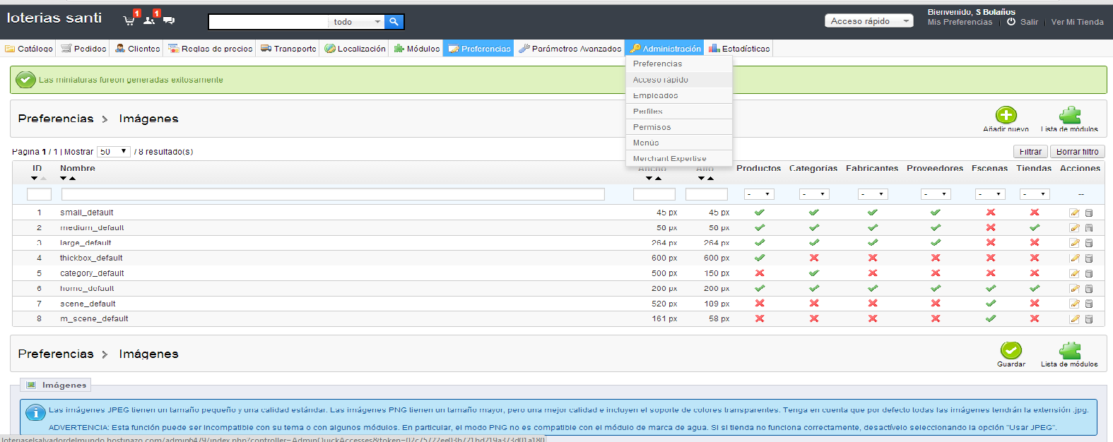 mckk Posted June 25, 2014 Share Posted June 25, 2014 Hola, necesito una ayudita, quiero hacer una web para una admin de loterías y quisiera que se vieran dos lineas de 5 productos.llevo toda la tarde dándole vueltas y mirando en el foro y he probado lo de cambiar lo de el tamaño de las imágenes "home" le e puesto 200x200 en vez de 124 creo que trae por defecto y nada, no se inmuta siguen saliendo del mismo tamaño. Me e metido en el archivo tpl y le e puesto que me salgan 5 itemmsperline pero nada no cambia nada. He mirado en el foro y las soluciones que proponen es lo d cambiar el tamaño en las imágenes de prestashop en preferencias, y cambiar el tpl pero lo he echo y sigue sin haber ningún tipo de cambios os dejo el enlace de la web de pruebas haber si me podéis echar un cable. Gracias http://loteriaselsalvadordelmundo.hostinazo.com/index.php Link to comment Share on other sites More sharing options...