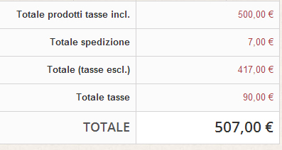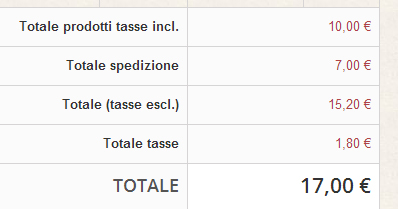 Se acquisto un solo prodotto es. prezzo finale 10 euro, lo scorporo dell'Iva è corretto ed il cliente visualizzerà come tasse 1,8 €. In effetti applicando lo scorporo il risultato è ( 10/1.22 = 8,1967 approssimabile a 8,2 dunque imponibile 8,2 ( iva 8,1967 *22 /100 = iva 1,8032 approssimabile a 1,8 ).