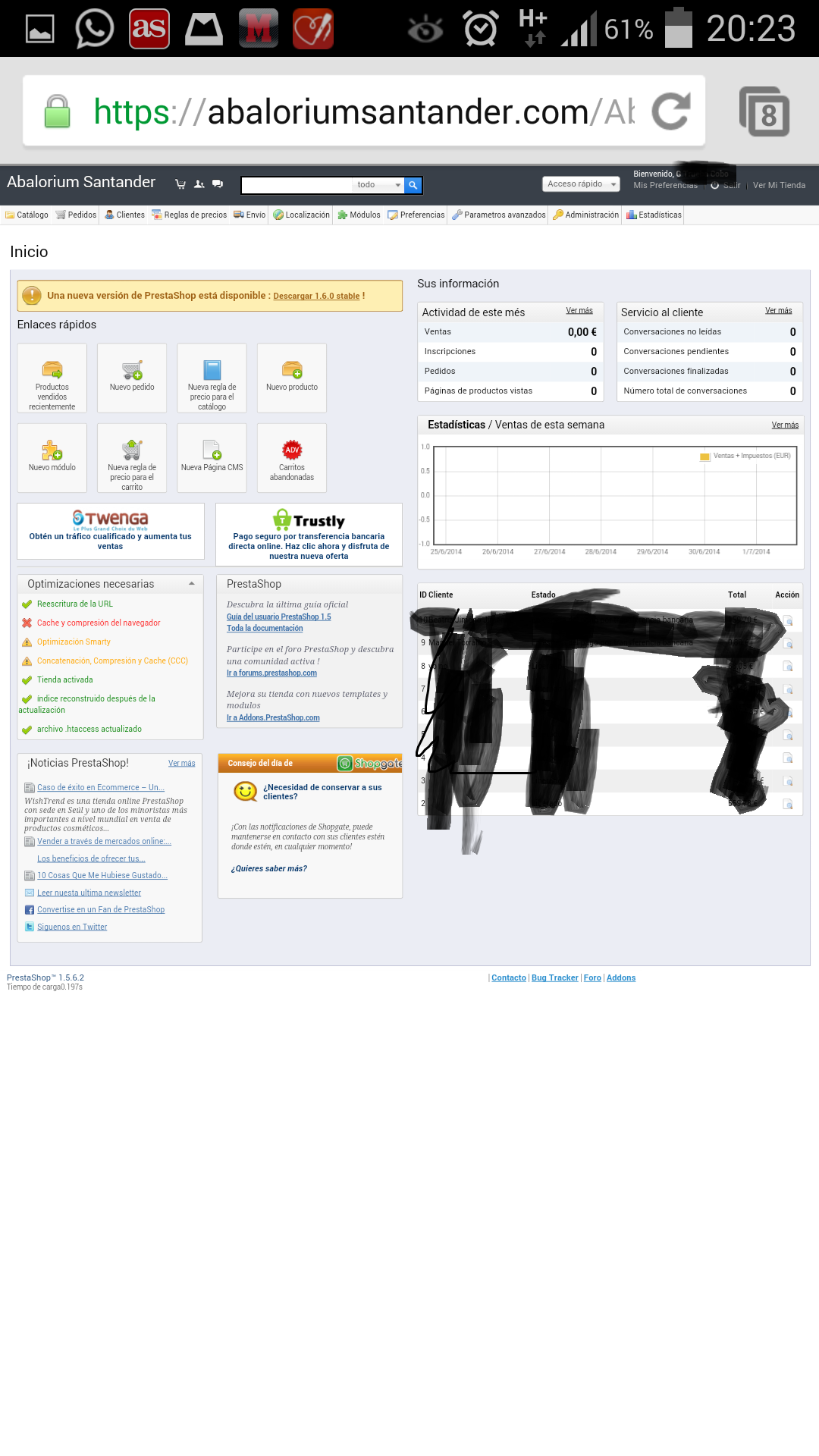 p414 Posted July 25, 2014 Share Posted July 25, 2014 Hola, mil gracias por responder!! y perdona que yo tardara tanto.. me pillo fuera por trabajo y sin cobertura.. mil perdones!!! La versión que tengo es la 1.5.6.2 Y lo que quiero es que en el movil se vea tal cual es la web.. como se veia en versiones anteriores.. que se ve pequeña y con el dedo vas haciendo zoom para ver lo que que quieres mas grabde... Un saludo Te dejo mi ip: 187.188.101.94 Espero tu aviso para poder ver el frontend de tu tienda y ver si le podemos quitar la funcionalidad responsive saludos!!! Link to comment Share on other sites More sharing options...