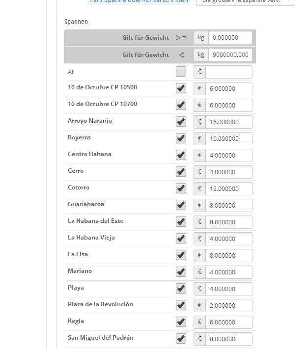 to change delivery areas in Deliveries