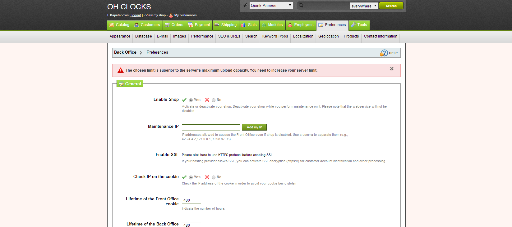 nightsquad Posted July 5, 2014 Author Share Posted July 5, 2014 Can't make any changes in preferences. If i wan't for example disable shop, it says The chosen limit is superior to the server's maximum upload capacity. You need to increase your server limit. Administrator is telling me that it's internal config Don't know if it's true, or where else to modify it.. Link to comment Share on other sites More sharing options...