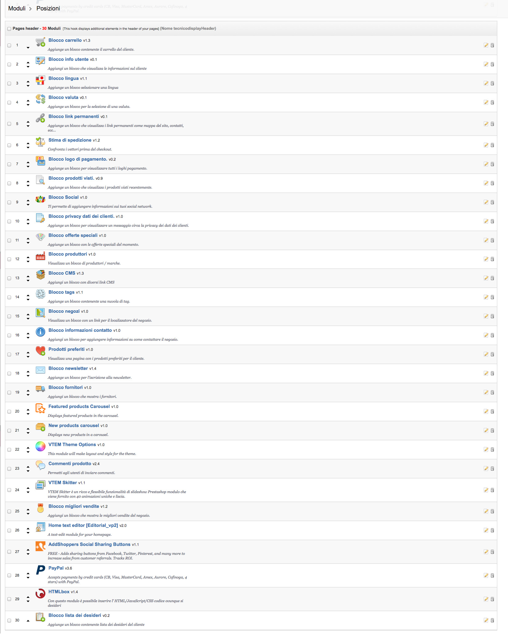 darialitchi Posted July 5, 2014 Share Posted July 5, 2014 Ciao a tutti, dopo aver "reimpostato" (nella lista moduli, alla voce "blocco lingua") il, appunto, il blocco lingua, mi si è incasinata la header. Il menu lingue è finito sotto lo slider, fuori dalla header, mentre carrello e pulsante per il login sono spariti. Il menu lingue sono riuscita a riportarlo in posizione, come potete vedere dalle immagini allegate, mentre carrello e login continuano ad essere invisibili. Come risolvo? Allego anche schermate delle liste dei moduli per "pages header" e "top of pages". Grazie. Link to comment Share on other sites More sharing options...