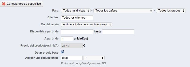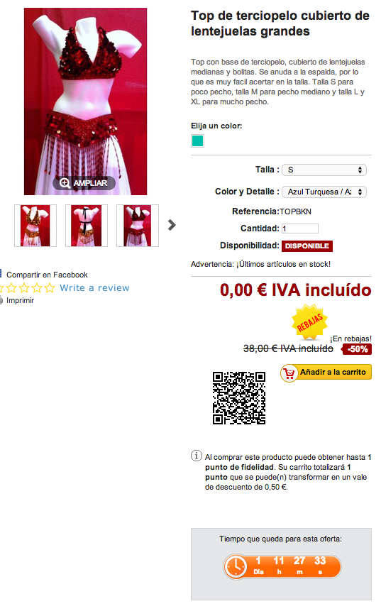 ropadearabia Posted July 6, 2014 Share Posted July 6, 2014 ¡Hola a todos! Llevo ya arrastrando este problema desde hace tiempo, y a pesar de que me han intentado solucionar varias veces, no hay manera. Compré el modulo "descuentos con cuenta atras", pero también me pasa con las "Reglas de precio del catálogo". Y el problema está en ambos. Tengo un problema de visualizacion de los precios. Al hacer un descuento, si dejo clicada la opción "dejar precio base", el precio sale en 0,00€. Lo raro es que en el listado se ve bien, pero cuando entras al producto, es cuando se ve el 0,00€ Os adjunto unos pantallazos para que lo veais, a ver si alguien tiene alguna idea. He probado con diferentes theme, y en todos pasa igual. En la foto de la chica, se ve bien porque esta sin cliclar "dejar precio base" y en la foto del maniqui se ve mal, porque esta seleccionada. Si voy producto a producto, pues lo puedo hacer a mano, pero no puedo aplicar las "reglas de precio del catálogo" por ejemplo para una categoria, porque me saldrian todos mal. Si alguien me puede ayudar!!! gracias Link to comment Share on other sites More sharing options...