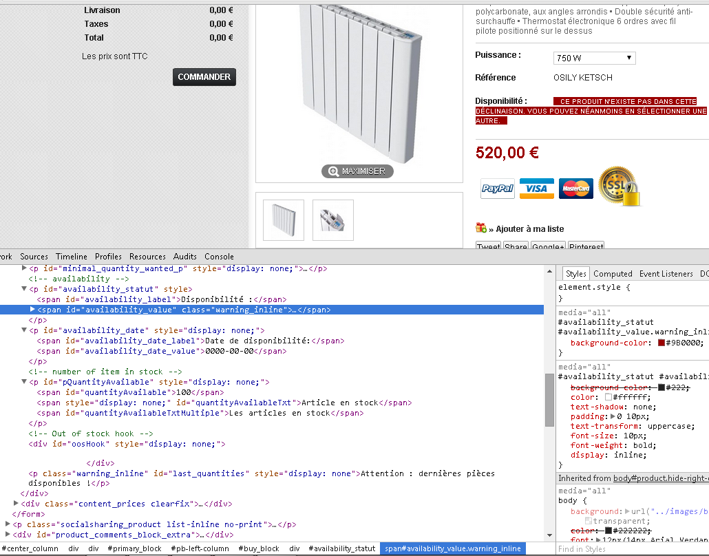 Leo04 Posted July 7, 2014 Share Posted July 7, 2014 I finished setting up my online store prestashop and I entered all the product variations and stock. The problem is that I found a bug that appeared overnight on all product pages with variations:Or modules in left position and zoom product does not workOr modules (left and zoom product) and work but we can not add products to your cart. The following message then appears that the stock has been entered into variations and "This product does not exist in this variation. However, you can select another"Only the product pages with no variation function:Do you have an idea of the source of the blocking bugs to finalize my shop Prestashop? Link to comment Share on other sites More sharing options...
