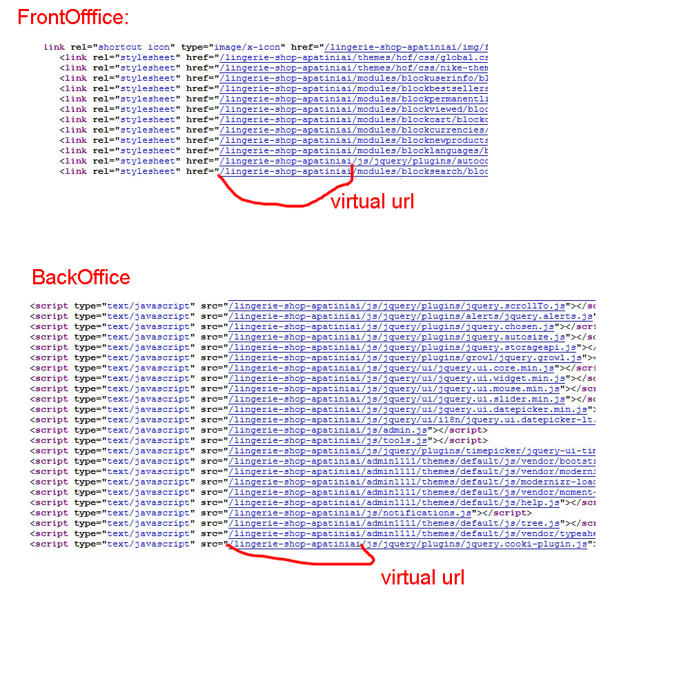 Richard S Posted July 9, 2014 Share Posted July 9, 2014 I have some virtual shops set up, for example, domain.com/shop1 domain.com/shop2 shop1 and shop2 are virtual URLs, which are added at the beginning of every JS and CSS file in frontoffice and everything is OK. However, when I try to edit my shop in backoffice (click on shop to edit it) it also adds this virtual address which breaks all styling and JS.Is this a bug of PS1.6.0.8 or am I missing something here? Attached image. Link to comment Share on other sites More sharing options...