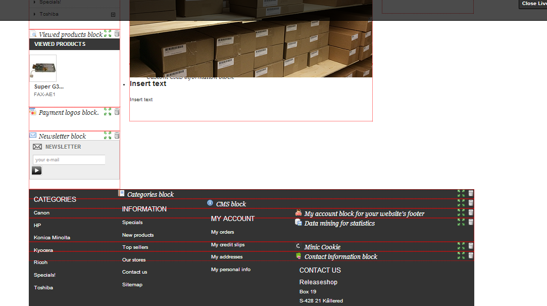 Releaseshop Posted July 10, 2014 Share Posted July 10, 2014 Hi! I am kind of new to prestashop... I upgraded for the first time from 1.56 something to 1.6.0.8 or what the latest is and came upon a few issues First I had troubles with the image slider not working but I fixed that.. Now, the images in the slider does not scale as before. Before I had much bigger image and it just made it smaller to fit the module window. Now it scales the width correct size wise but it zooms in to the picture so not everything shows.. the height is all crazy, exceeding downwards how ever it likes.. I tried cropping the mages to 5xx - 3xx something so at least everything shows. But still, it is outside of the slider window, check the images attached, I have a CMS block under the slider block and the image is half-hidden! If I remove the CMS block then the image exceeds over my footer.... Any help ? Also, as seen in the images, all the blocks look crazy, the footer and the header, cms/language/menu/category blocks.. help Link to comment Share on other sites More sharing options...