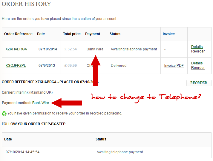 davidell Posted July 10, 2014 Share Posted July 10, 2014 Hello PS community,Needless to say I'm in love with 1.6... however, I've an old site running Prestashop version: 1.5.3.1Trying to modify the Pay by Bank Wire module manually to Pay by Telephone. Done OK so far, but there are a couple of instances I can not track down.Namely, /order-history and in the back office /AdminOrdersJust can't seem to find 'Bank Wire' anywhere to edit to 'Telephone', as you can see managed to change everywhere else where needed. Couple of grabs show just exactly where in this installation where I'm trying to change the text. Link to comment Share on other sites More sharing options...