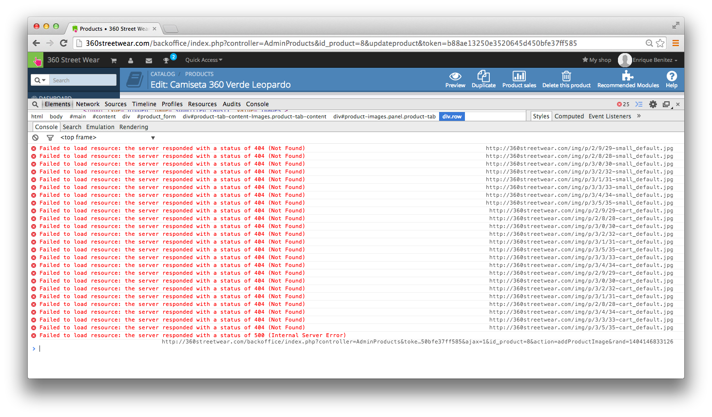 enriquebp Posted July 10, 2014 Share Posted July 10, 2014 (edited) Hi, I can't upload product images. I have tried some of the solutions that I've found on this forum and elsewhere on the internet but nothing seems to work. I can't find a thread dealing with the exact same problem. When I try to upload a product image, a box showing an error (with no text) appears (attachment 1). When I use the "inspect element" option in Chrome (attachment 2) to find out more about what is happening, it shows (I think) that there is some kind of problem when uploading or processing the thumbnails of the original product image. I changed the permissions assigned to those files and directories but it didn't fix it. I'm running Prestashop 1.6.0.6 on 1and1 hosting. Has anyone had this problem before? Can anyone suggest a solution? Thank you very much. Edited July 10, 2014 by enriquebp (see edit history) Link to comment Share on other sites More sharing options...