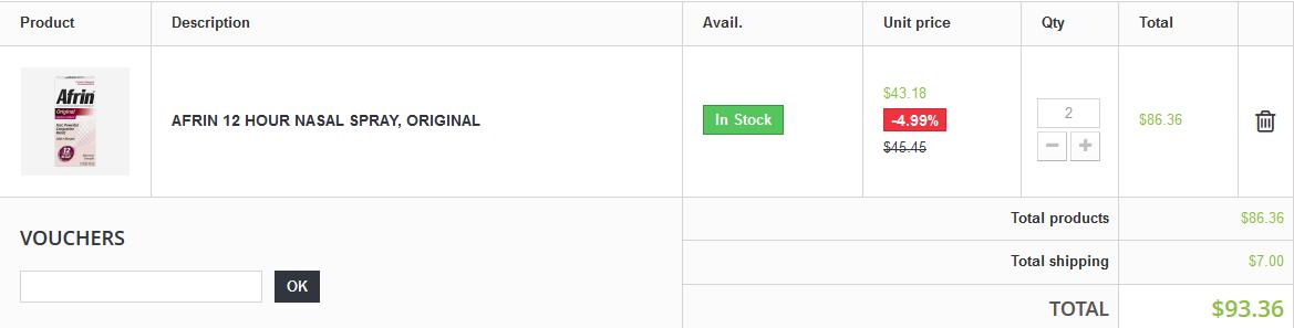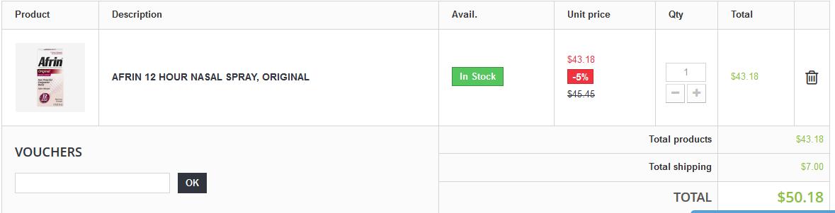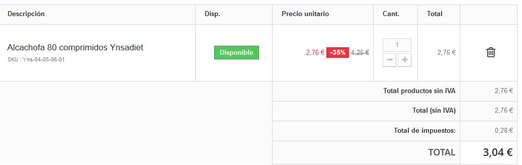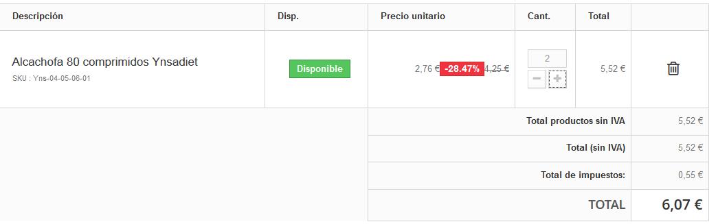 Primero se muestra el carrito en el cual aparece 1 artículo y el descuento perfecto. Peeero (y aquí viene mi problema) si ahora añades 1 unidad más al carrito, de repente me cambia el número rojito y en vez de 35% me pone 28.47% ¿?¿?