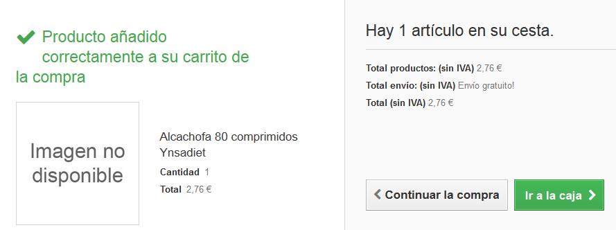 Si lo añades al carrito, se añade perfecto. Te dice "Producto añadido correctamente a tu carrito de la compra"