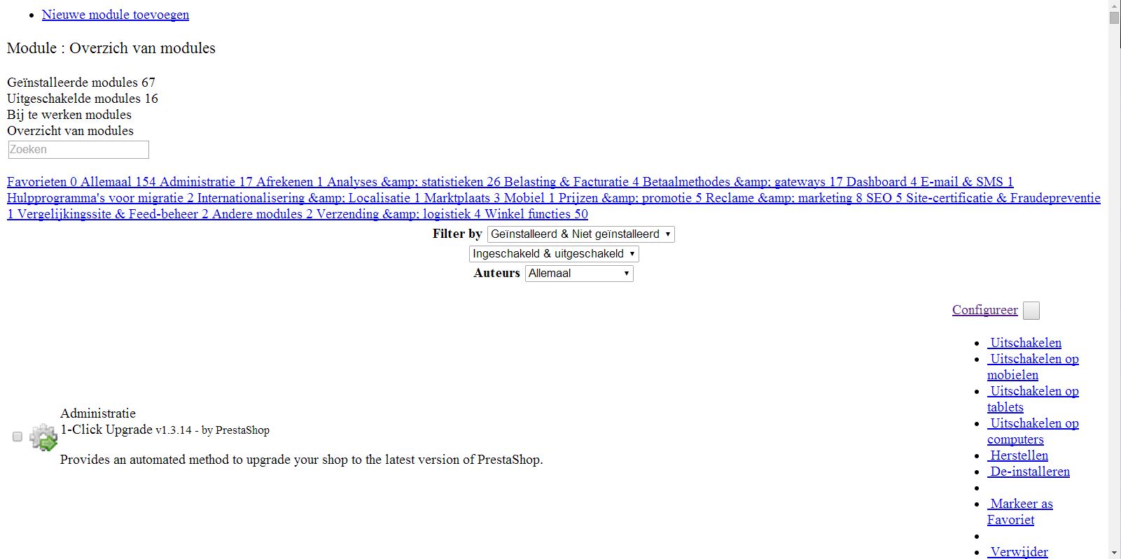 QuakePB Posted July 12, 2014 Share Posted July 12, 2014 hallo, als ik in mijn backoffice de modules wil beheren is heel mijn layout weg en kan ik heel lastig zoeken aangezien de zoekfunctie en drop down functie niet meer naar behoren werkt. iemand enig idee? bijgevoegd een screenshot van de desbetreffende pagina. mvg yannick Link to comment Share on other sites More sharing options...