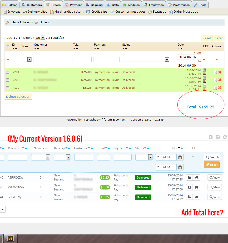 I note that the orders page in the Prestashop 1.6.0.6 does not include the total on this page.