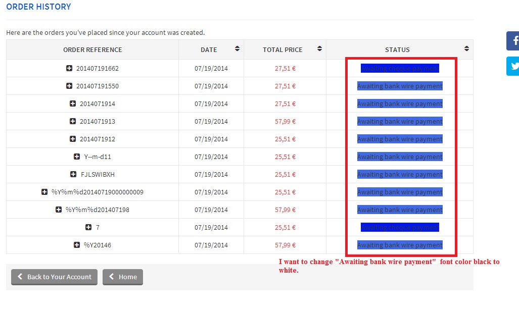 HTZ7 Posted July 19, 2014 Share Posted July 19, 2014 HI, I would like to change Awaiting Cheque Payment font color black to white. How to change Awaiting Cheque Payment font color black to white step by step? Please help me. Thanks. Link to comment Share on other sites More sharing options...