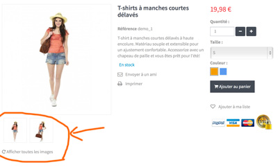 rachdady Posted July 26, 2014 Author Share Posted July 26, 2014 Salut, j'ai suivi le conseil de AgostiniJulien en n'effaçant pas! Je travail dans le product.tpl à la ligne +/- 98 dans lequel j'ai ajouter {* & *}, ou alors je suis pas au bon endroit ? </div> <!-- end image-block --> {* {if isset($images) && count($images) > 0} <!-- thumbnails --> <div id="views_block" class="clearfix {if isset($images) && count($images) < 2}hidden{/if}"> {if isset($images) && count($images) > 4} <span class="view_scroll_spacer"> <a id="view_scroll_left" class="" title="{l s='Other views'}" href="javascript:{ldelim}{rdelim}"> {l s='Previous'} </a> </span> {/if} *} <div id="thumbs_list"> .... 1 Link to comment Share on other sites More sharing options...
