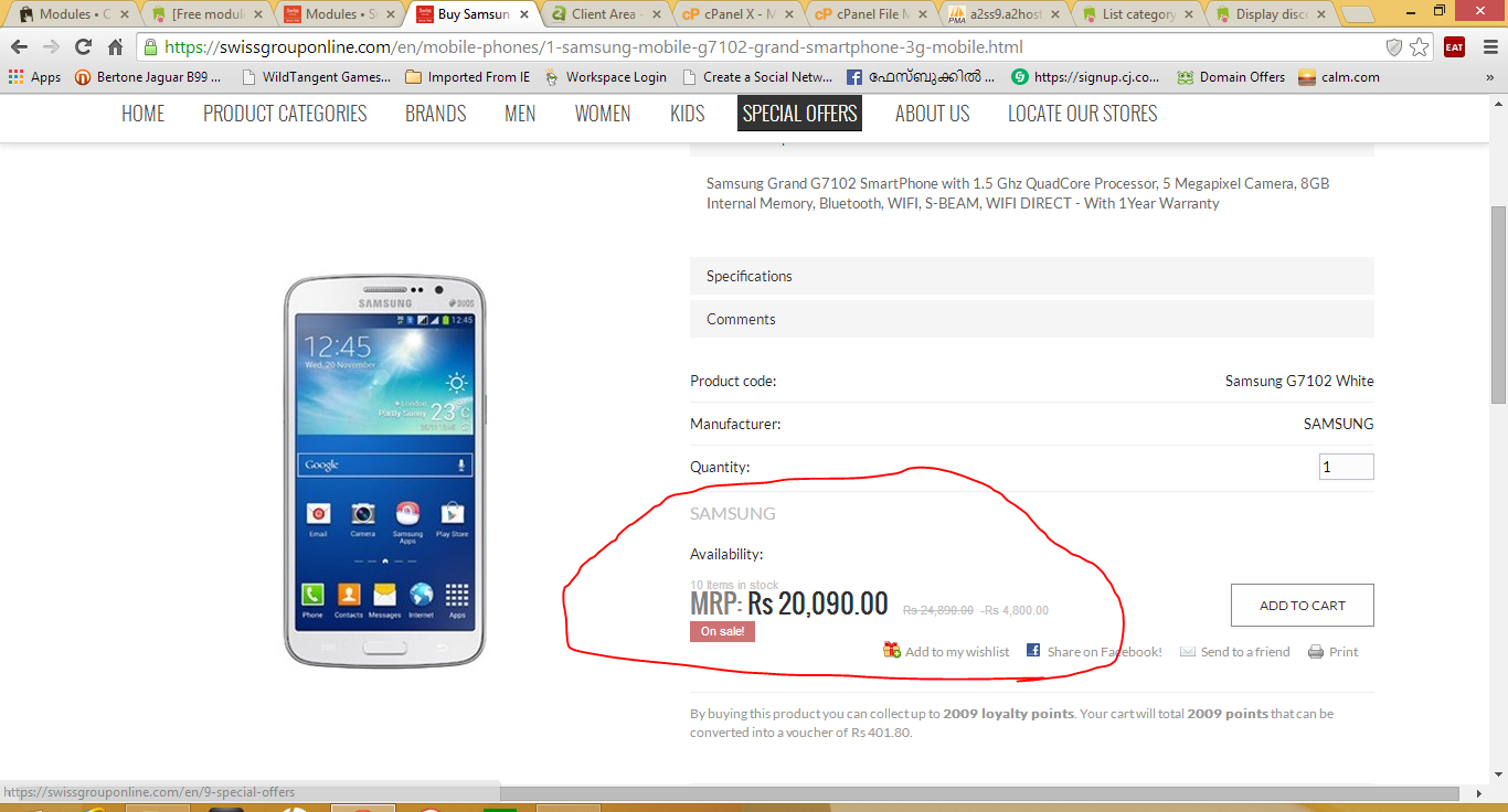 Cushbinshad Adbinad Posted July 27, 2014 Author Share Posted July 27, 2014 Hi, After updating the code still I am getting the same output. No difference. Please see the attached screenshots. Site address:https://swissgrouponline.com/en/mobile-phones/1-samsung-mobile-g7102-grand-smartphone-3g-mobile.html regards Cushbin Link to comment Share on other sites More sharing options...