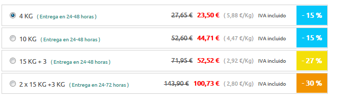 En otra web http://www.zooplus.es/shop/tienda_perros/pienso_perros/royal_canin_size/399223 aparece algo similar pero visualmente menos atractiva, tiene pinta de ser combinaciones y despues haber tocado "algo" para dejarla visualmente mejor.