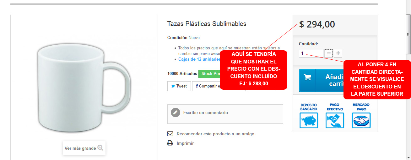 mundo sublime Posted July 26, 2014 Share Posted July 26, 2014 Hola. Yo vendo productos por cajas y aplico descuentos por ejemplo a partir de la 4ta caja. Me gustaría saber si cuando alguien en cantidad pone "4" se pudiera visualizar el descuento sin tener que agregarlo al carrito y pasar por la caja. Dejo unas capturas a ver si se entiende mejor. Desde ya muchas gracias Prestashop 1.6.0.8 Link to comment Share on other sites More sharing options...