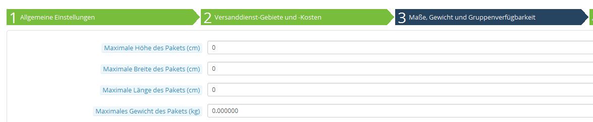 kulli Posted August 3, 2014 Share Posted August 3, 2014 Ich kann mir nur vorstellen das mit umfang das gebräuchliche Gurtmass gemeint ist (längste Seite+Höhe) also breit+höhe=umfang(Gurtmass) kann vielleicht bei der Übersetzung mal nachgefragt werden oder bei presta direkt? die abfragen beziehen sich wohl auf breite+höhe+umfang; wäre aber auch unlogisch? deswegen würde ich auch es nicht so kompliziert machen, sondern höhe und breite einfach mal weglassen oder den gesamten Versand auf Mischkalkulation umstellen damit die Lieferzeit wieder angezeigt wird musst Du das Template neu kompilieren und den cache leeren gruss Hallo Zusammen, ich habe eine Verständnis(Problem) mit den Versandeinstellungen und hoffe mir kann jemand Helfen? In der Artikelbeschreibung stehen unter Versand folgende Einstellungen Breite (Paket) Höhe (Paket) Umfang (Paket) Wenn ich ein Paket mit 30cm Kantenlänge versenden möchte. sind das doch Breite (Paket) 30cm Höhe (Paket) 30cm Umfang (Paket) 120cm (sollte hier nicht die Tiefe abgefragt werden?) Den Versanddienst habe ich wie folgt konfiguriert (DHL Paket max. Größe: 120x60x60cm) Maximale Höhe des Pakets (cm) 60cm Maximale Breite des Pakets (cm) 60cm Maximale Tiefe des Pakets (cm) 120cm das sind die DHL Vorgaben für die max. Paketgröße Wenn man diesen Artikel dann bezahlen will, kommt die Meldung keinen Versanddienst gefunden. Wenn ich die Daten von DHL von 120cm auf 400cm ändere geht wieder alles? Was mache ich falsch oder stimmen die Abfragen nicht? Prestashop 1.0.6.8 Standard Template Grüße Link to comment Share on other sites More sharing options...