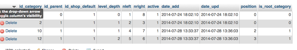 _tech Posted October 22, 2014 Share Posted October 22, 2014 Hello, I would like to know if you found out about this "bug" ? I have the same thing on one shop.Thanks. Hello everyone, i'm currently doing a massive import of a custom database into the new version of prestashop 1.6.0.8 bassically what i'm doing is querying the old database for data.. custom create my .csv than import that into backend of Tools > CSV Import option. curently stuck at categories and i'd like to share a bug ( i think ) i've found. every .csv i tried with categories that i want to import won't import the parent_id of that category IF it is a root_category. take the screens: screen1.png translates into the database into screen2.png but if i remove the 1 from is_root_categories the update works and the database looks like this screen3.png i'd be most than thankful if someone could help me, maybe encountered this problem before or has a fix. Thanks. Link to comment Share on other sites More sharing options...