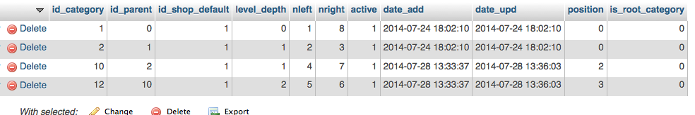 iulu2v Posted July 28, 2014 Share Posted July 28, 2014 Hello everyone, i'm currently doing a massive import of a custom database into the new version of prestashop 1.6.0.8 bassically what i'm doing is querying the old database for data.. custom create my .csv than import that into backend of Tools > CSV Import option. curently stuck at categories and i'd like to share a bug ( i think ) i've found. every .csv i tried with categories that i want to import won't import the parent_id of that category IF it is a root_category. take the screens: translates into the database into but if i remove the 1 from is_root_categories the update works and the database looks like this i'd be most than thankful if someone could help me, maybe encountered this problem before or has a fix. Thanks. Link to comment Share on other sites More sharing options...