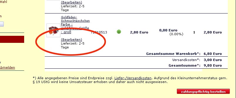 Frau_Inga Posted July 28, 2014 Share Posted July 28, 2014 Hallo, die Lieferzeiten habe ich fast überall einbauen können. Jetzt scheitere ich aber an der Bestellbestätigung und am Warenkorb In der order_conf.html sieht der Quelletext, der die Produktdetails abbildet so aus: <th style="width: 10%; padding: 0.6em 0;">Menge</th> <th style="width: 15%; padding: 0.6em 0;">Gesamtpreis</th> </tr> <!-- Products --> {products} {discounts}<!-- Footer: prices --> <tr style="text-align: right;"> <td> </td> Aus welcher Datei holt sich die order_conf die Produktinformationen? In der shopping-cart.tpl sieht es so aus: {foreach from=$products item=product name=productLoop} {assign var='productId' value=$product.id_product} {assign var='productAttributeId' value=$product.id_product_attribute} {assign var='quantityDisplayed' value=0} {* Display the product line *} {include file="$tpl_dir./shopping-cart-product-line.tpl"} {* Then the customized datas ones*} {if isset($customizedDatas.$productId.$productAttributeId)} {foreach from=$customizedDatas.$productId.$productAttributeId key='id_customization' item='customization'} <tr id="product_{$product.id_product}_{$product.id_product_attribute}_{$id_customization}" class="alternate_item cart_item"> <td colspan="5"> {foreach from=$customization.datas key='type' item='datas'} {if $type == $CUS Auch hier wieder die Frage aus welcher Datei die Informationen über Produktdeteils geholt werden, bzw. an welcher Stelle ich in dieser Datei "Lieferzeit: 2-5 Tage" einbauen kann, so dass es bei jedem Artikel erscheint. Danke für jden Hinweis - ich finde das dann schon Inga Link to comment Share on other sites More sharing options...