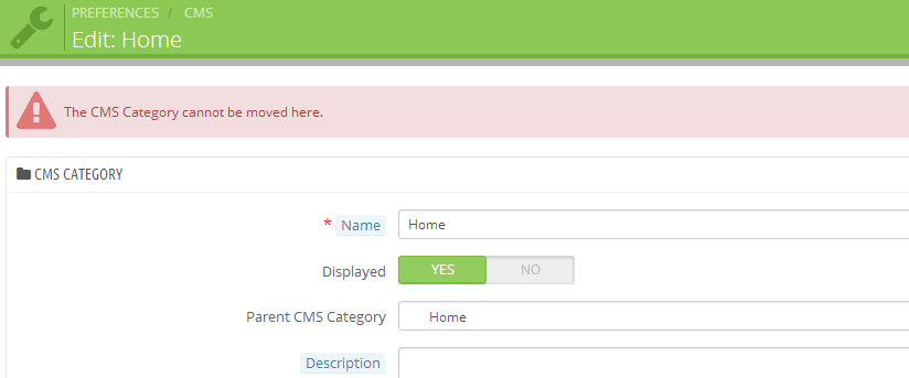 vekia Posted August 3, 2014 Share Posted August 3, 2014 i see where the problem is, there is a problem with move category to "home" because there is selectbox with parent category home category can't be a parent of home category have you got an access to PHPmyAdmin ? Link to comment Share on other sites More sharing options...