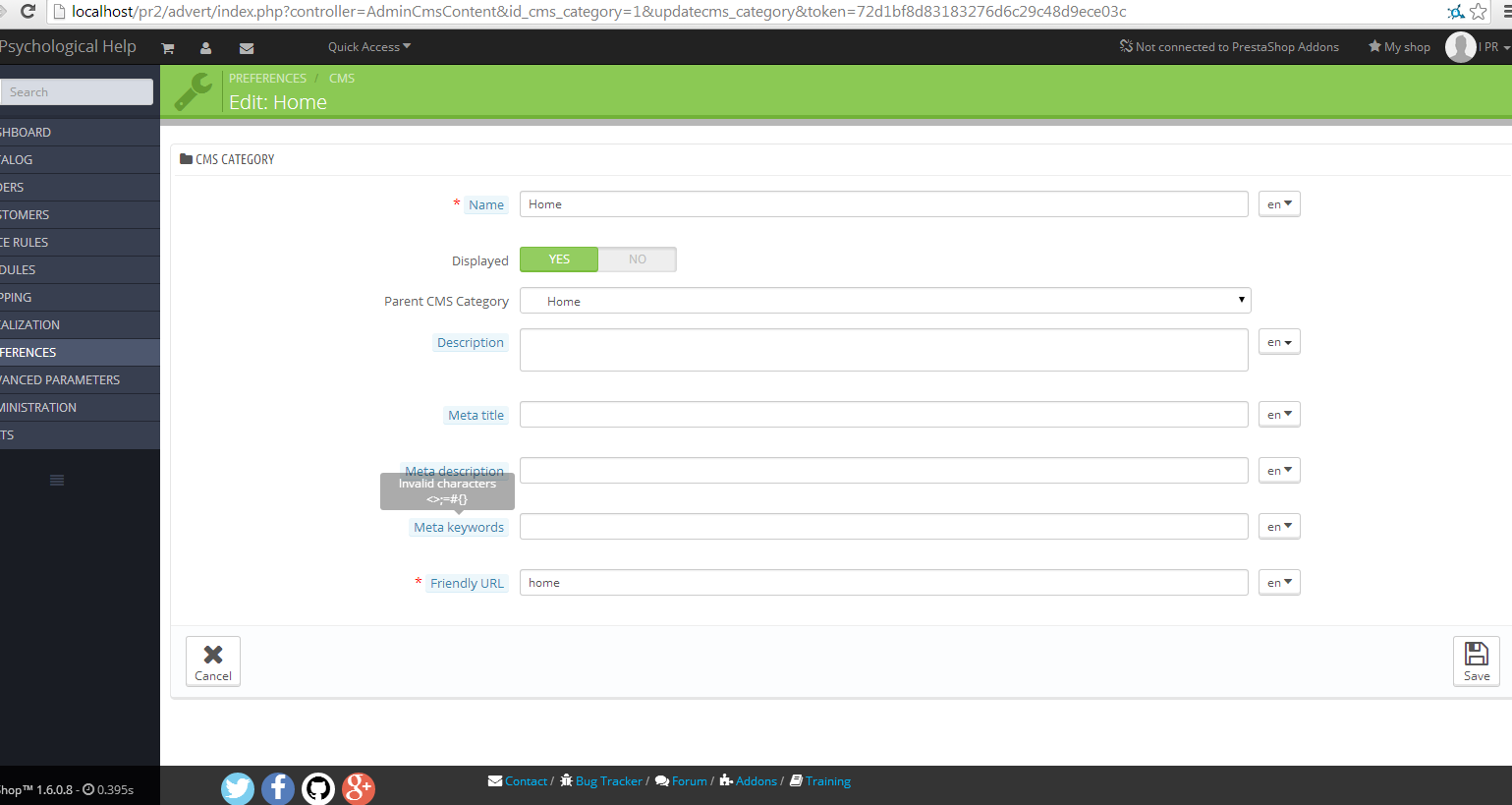 HH Services Limited Posted August 1, 2014 Author Share Posted August 1, 2014 Sorry Vekia, I´ll explain better: This page: http://www.goodpsychologists.com/en/content/category/1-home can be access from the front office and like any other page has its meta tiltle and meta description. I can access the other pages inside from pref/seo and url , but not the actual page for which link I am sending you. It´s like I can access its items (about us, legal notice...) but not the home category to change its metas... I hope that you can understand now, let me know if you don´t. Thank you for sharing your knowledge with us, Anthony. Link to comment Share on other sites More sharing options...