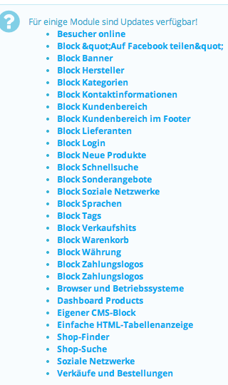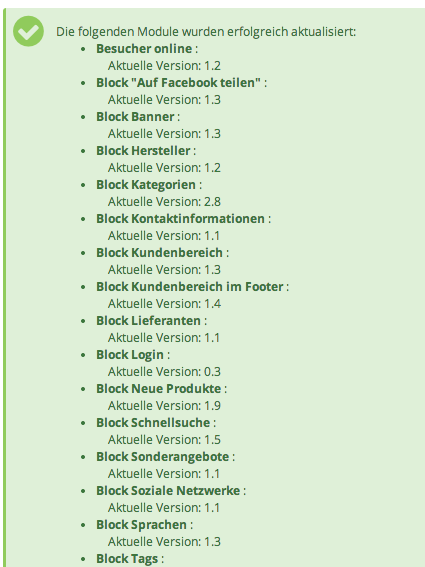 AndyGerhard Posted July 30, 2014 Share Posted July 30, 2014 Ich habe die Aktualisierung der Module gemacht und es wird auch angezeigt das es geklappt hat. Aber jedes mal wenn ich wieder auf Module klicke, wird mir erneut angezeigt, Module müssen aktualisiert werden (Siehe Screenshots). Hab ich was falsch gemacht bei den Einstellungen? Link to comment Share on other sites More sharing options...