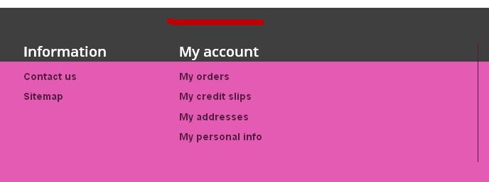 dioniz Posted August 1, 2014 Share Posted August 1, 2014 So you want to change that dark grey line i guess. It's actually image and you have code here: .footer-container { background: url("../img/footer-bg.png") repeat-x scroll 0 0 #333333; } .footer-container { background-color: #333333; } Link to comment Share on other sites More sharing options...