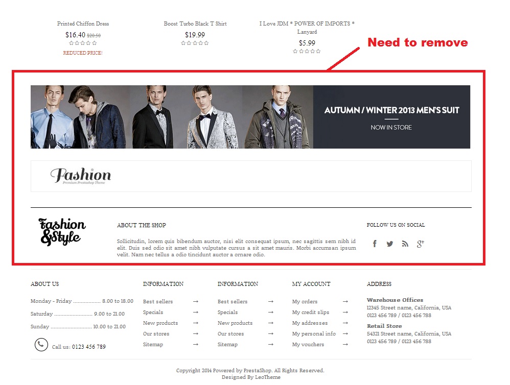 TaThach72 Posted July 31, 2014 Share Posted July 31, 2014 Hi, I have Leo Fashion Store on my front page and I want to disable 3 widget modules....the link below shows how the front page looks like.... http://www.leotheme.com/prestashop/themes/264-leo-fashion-store.html The 3 widgets I want to disable is 5, 6, and 7. I also provided a picture below of what I want to disable. If you can help me navigate where I can disable those modules that would be great! Thank you, Ta Link to comment Share on other sites More sharing options...