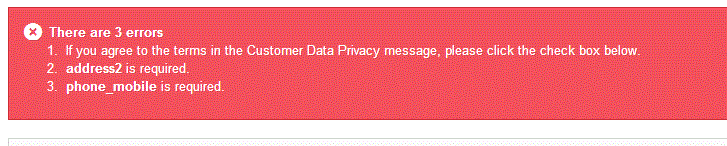 BenC Posted August 5, 2014 Share Posted August 5, 2014 Hi, I am using prestashop 1.6 and am having problems with new customer registration. When a customer tries to register it is asking for address2 and mobile to be filled in as a required field. This does not need to be a requirement however when I check the address.php file it doesnt state that it is required. Can someone help please? Here is my address.php public static $definition = array( 'table' => 'address', 'primary' => 'id_address', 'fields' => array( 'id_customer' => array('type' => self::TYPE_INT, 'validate' => 'isNullOrUnsignedId', 'copy_post' => false), 'id_manufacturer' => array('type' => self::TYPE_INT, 'validate' => 'isNullOrUnsignedId', 'copy_post' => false), 'id_supplier' => array('type' => self::TYPE_INT, 'validate' => 'isNullOrUnsignedId', 'copy_post' => false), 'id_warehouse' => array('type' => self::TYPE_INT, 'validate' => 'isNullOrUnsignedId', 'copy_post' => false), 'id_country' => array('type' => self::TYPE_INT, 'validate' => 'isUnsignedId', 'required' => true), 'id_state' => array('type' => self::TYPE_INT, 'validate' => 'isNullOrUnsignedId'), 'alias' => array('type' => self::TYPE_STRING, 'validate' => 'isGenericName', 'required' => true, 'size' => 32), 'company' => array('type' => self::TYPE_STRING, 'validate' => 'isGenericName', 'size' => 64), 'lastname' => array('type' => self::TYPE_STRING, 'validate' => 'isName', 'required' => true, 'size' => 32), 'firstname' => array('type' => self::TYPE_STRING, 'validate' => 'isName', 'required' => true, 'size' => 32), 'vat_number' => array('type' => self::TYPE_STRING, 'validate' => 'isGenericName'), 'address1' => array('type' => self::TYPE_STRING, 'validate' => 'isAddress', 'required' => true, 'size' => 128), 'address2' => array('type' => self::TYPE_STRING, 'validate' => 'isAddress', 'size' => 128), 'postcode' => array('type' => self::TYPE_STRING, 'validate' => 'isPostCode', 'size' => 12), 'city' => array('type' => self::TYPE_STRING, 'validate' => 'isCityName', 'required' => true, 'size' => 64), 'other' => array('type' => self::TYPE_STRING, 'validate' => 'isMessage', 'size' => 300), 'phone' => array('type' => self::TYPE_STRING, 'validate' => 'isPhoneNumber', 'size' => 32), 'phone_mobile' => array('type' => self::TYPE_STRING, 'validate' => 'isPhoneNumber', 'size' => 32), 'dni' => array('type' => self::TYPE_STRING, 'validate' => 'isDniLite', 'size' => 16), 'deleted' => array('type' => self::TYPE_BOOL, 'validate' => 'isBool', 'copy_post' => false), 'date_add' => array('type' => self::TYPE_DATE, 'validate' => 'isDateFormat', 'copy_post' => false), 'date_upd' => array('type' => self::TYPE_DATE, 'validate' => 'isDateFormat', 'copy_post' => false), Link to comment Share on other sites More sharing options...
