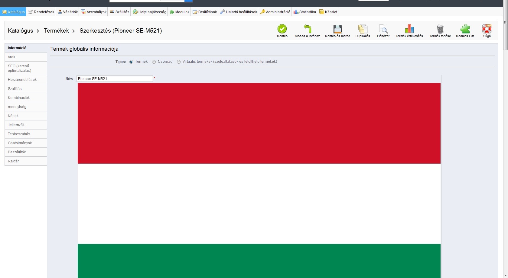 pattila01 Posted August 6, 2014 Share Posted August 6, 2014 (edited) Ezt is megéltem: ezredik hozzászólásom Nem írtad, pontosan hányas verzióról van szó. A kép alapján 1.5.x. Illetve ez csak az admin felületen van, ugye? A problémát az okozhatja, hogy a Helyi sajátosság => Nyelvek résznél a Magyar nyelv szerkesztésénél valaki túl nagy Magyar zászlós képet töltött fel a nyelvhez. Ezzel a megoldással próbálkozz: a fenti helyen tallózz be egy új képet Magyar zászlónak, mondjuk ezt: http://kostolohelyek.hu/ccode/content_design/magyar_zaszlo.png vagy ha .jpg kell:http://www.eastcraft.hu/site/userfiles/image/langs/zaszlo_hu.jpg Ezeket most gúgliztam ki. Edited August 6, 2014 by pattila01 (see edit history) 1 Link to comment Share on other sites More sharing options...