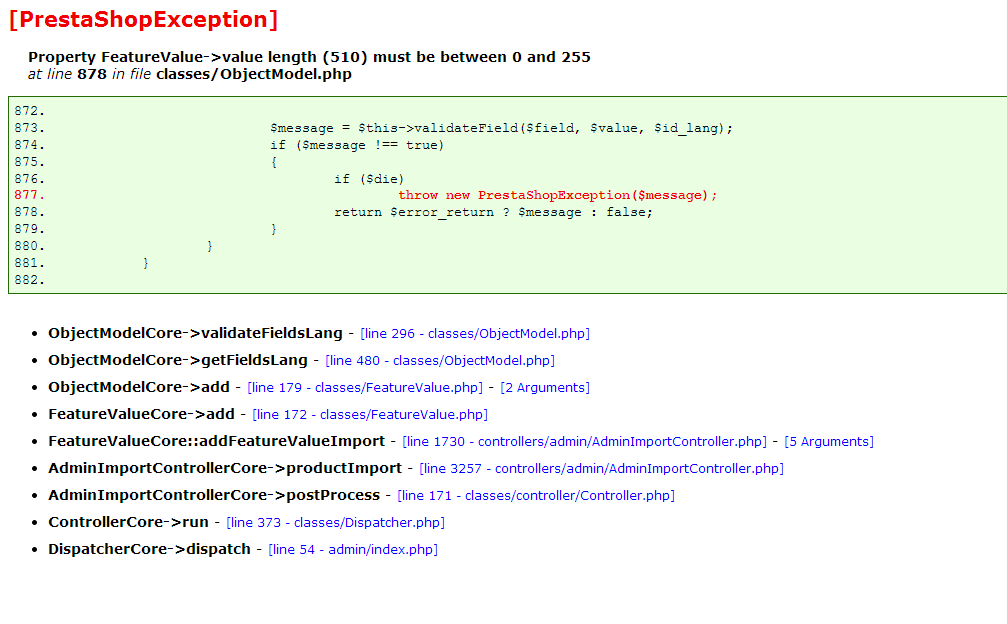 Whiley Posted August 6, 2014 Share Posted August 6, 2014 Hallo Dognose, Ich habe aber vorher auch schon 400er und 500er Ketten importiert. Da kam diese Meldung auch nicht. beim Wert für Produkteigenschaften ist das bei default-shop kaum möglich! Du musst zunächst in der Datenbanktabelle ps_feature_value_lang den Feldlängenwert für feature_value (default id3 varchar(255)) auf den von dir gewünschten Wert hochsetzen. Dann in der /classes/FeatureValue.php die Zeile : protected $fieldsSizeLang = array('value' => 255); ebenfalls anpassen. Ich bin mir nicht ganz sicher ob der längen-Wert im Import-Controller auch noch abgefragt wird, aber zumindest bei der manuellen Eingabe müsste es soweit schon mal funktionieren. Grüsse Whiley Link to comment Share on other sites More sharing options...