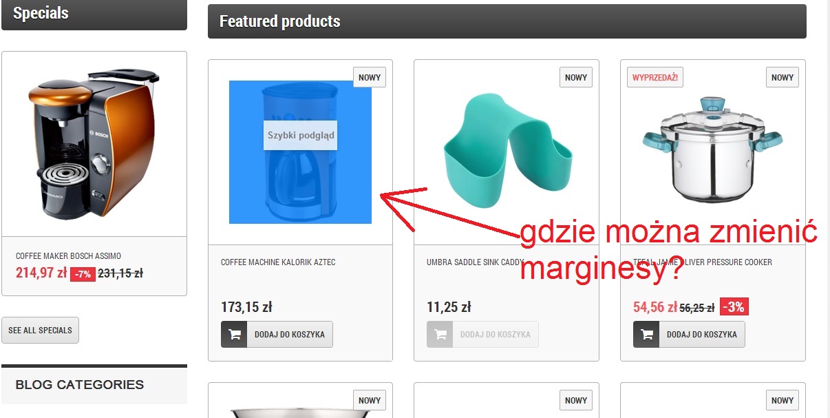 gep Posted August 7, 2014 Share Posted August 7, 2014 Witam, gdzie zmienić marginesy dla przedstawianych fotek w theme: Kitchen Supplies Store http://livedemo00.template-help.com/prestashop_49456/ w załączniku fotka pokazująca obrys, wielkość fotki oraz marginesy... z góry dziękuję za informację. Link to comment Share on other sites More sharing options...