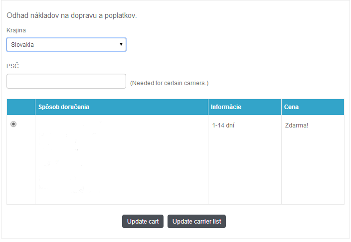 Caleydon Posted August 9, 2014 Share Posted August 9, 2014 Zdravim, v casti moduly najdete jeden, ktory sa vola "Shipping Estimate" resp. "Odhad ceny za dopravu" (zalezi od prekladu). Ten staci vypnut alebo odinstalovat. Link to comment Share on other sites More sharing options...