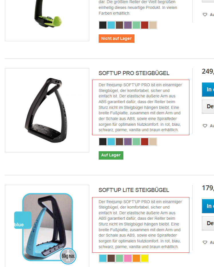 Porter Ricks Posted August 9, 2014 Share Posted August 9, 2014 (edited) Hallo Leute, leider wird ja die html-Formatierung in der Listenansicht ausgehebelt und der Text nur einfach dargestellt, ohne bold, italic, Aufzählungen etc. Ich habe schon versucht die strip_tags aus der product-list.tpl zu löschen, jedoch ohne Erfolg. <p class="product-desc" itemprop="description"> {$product.description_short|strip_tags:'UTF-8'|truncate:700:'...'} </p> Lösche ich jeweils nur den strip_tags, bzw. nur den truncate Befehl, dann stellt er die discription garnicht dar. Lösche ich beides, bekomme ich eine weiße Seite. Edit: Ich habe gerade noch diesen Thread gefunden http://www.prestashop.com/forums/topic/235877-gelost-produkt-kurzbeschreibungen-absatze-einfugen/?do=findComment&comment=1162371 Allerdings ist in der product-list.tpl (PS 1.6.0.5) nur einmal der strip_tag zu finden. Ich möchte den Text eigentlich nur als Blocksatz, da die Flattersätze nicht so schön aussehen. Weiß jemand Rat MfG, Porter Ricks. Edited August 9, 2014 by Porter Ricks (see edit history) Link to comment Share on other sites More sharing options...