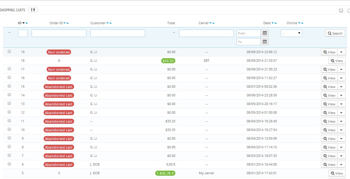 sbt Posted August 9, 2014 Share Posted August 9, 2014 PS1.6.0.9 Back office, customers-customers customers-shopping carts Many empty shopping carts are created. Please see the attachment. Don't know why. What's the point of creating a lot of empty shopping carts? This is not big deal, but just annoying. Any idea? Link to comment Share on other sites More sharing options...