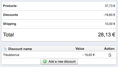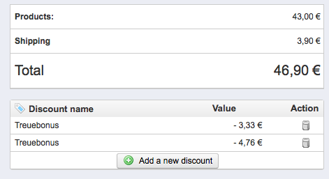 As you can see in one picture, the discount is missing in the total. This only happens occasionally.