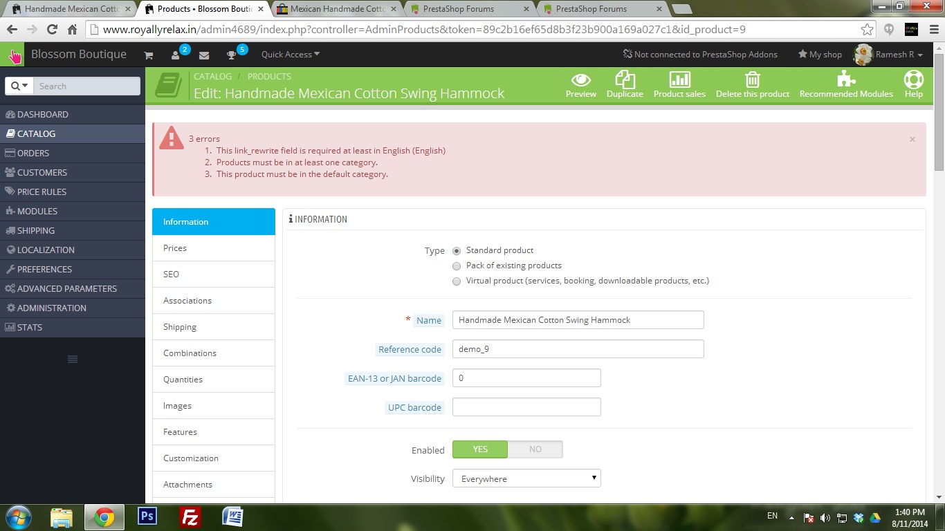 Ramesh R Posted August 11, 2014 Share Posted August 11, 2014 Hello friends, I get this error while adding new products. After filled out all the details i click the `save` button then i get the error message as in the attached picture. Please help me to resolve it. Thanks, Ramesh R Link to comment Share on other sites More sharing options...