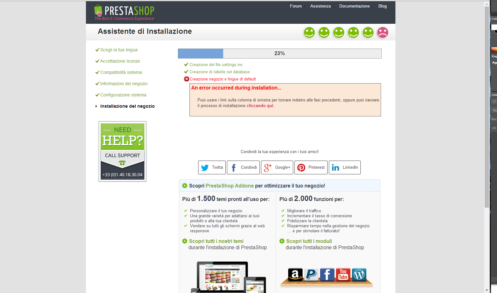 luca.1979 Posted August 14, 2014 Share Posted August 14, 2014 Buona sera a tutti, sto installando per la prima volta prestashop xò mi si blocca al 23%, qualcuno saprebbe darmi qualche suggerimento? Ringrazio anticipatamente P.S. allego anche uno screenshot Link to comment Share on other sites More sharing options...