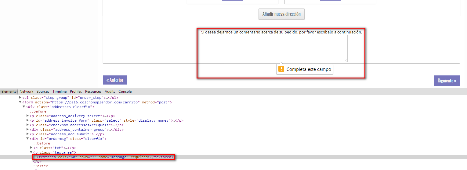 crowfilm2004 Posted August 18, 2014 Share Posted August 18, 2014 (edited) Buenas tardes a todos, He estado buscando en el foro pero no he encontrado nada que pueda ayudarme. Mi problema es que necesito que el mensaje que aparece en el paso 3 del proceso de compra (justo debajo de la dirección de entrega) sea obligatorio. Es decir, si no se pone, no debe dejar avanzar al siguiente paso del proceso de compra. Lo He intentado con la siguiente instrucción en la función processAddress() del archivo controllers/front/OrderController.php if (!isset($this->context->cart->message)) $this->errors[] = Tools::displayError('Debe introducir el mensaje.', !Tools::getValue('ajax')); Sin embargo, el error me aparece tanto si pongo algún texto como si no pongo nada. Además pasa al siguiente paso del proceso de compra. Agradecería cualquier ayuda sobre este tema. Tengo instalado prestashop 1.5 Muchas gracias. Edited August 25, 2014 by crowfilm2004 (see edit history) Link to comment Share on other sites More sharing options...