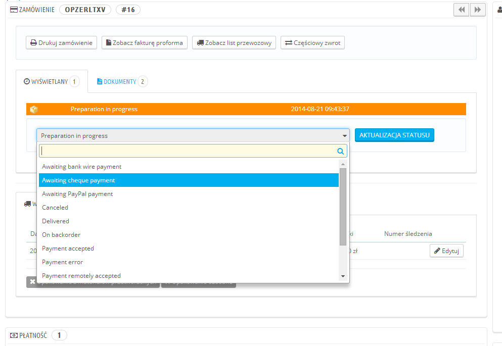 Qboleza Posted August 21, 2014 Share Posted August 21, 2014 Witam, posiadam preste 1.6.0.6 i nie mogę nigdzie znaleźć edycji tłumaczenia statusu wysyłki. Mam wszystko po ang np: Preparation in progress Czy ktoś ma pojęcie gdzie to zmienić? Dodam że w tłumaczeniach nie ma takiej opcji, przeszukałem wszystko. Dodaje screen. Link to comment Share on other sites More sharing options...